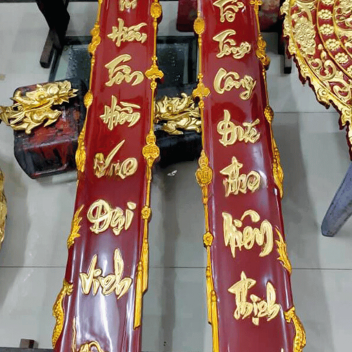 - Chất liệu thếp: Thếp Vàng hoặc thếp Bạc phủ hoàng kim (đối với hàng sơn phủ)