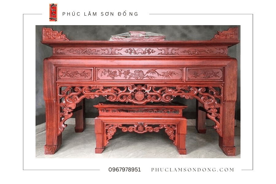 Phúc Lâm Sơn Đồng là đơn vị chuyên về sản xuất đồ mỹ nghệ thuộc làng nghề Sơn Đồng, với hơn 20 năm kinh nghiệm, chúng tôi chuyên thiết kế và trực tiếp chế tác các loại bàn thờ cao cấp, chạm khắc họa tiết hoa văn cổ và hoa văn hiện đại theo đúng yêu cầu của quý khách hàng. Chúng tôi có nhiều mẫu mã để khách hàng có thể lựa chọn để đảm bảo bộ bàn thờ phù hợp nhất với không gian thờ trong căn hộ của quý khách.