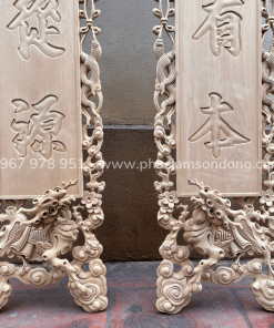 Câu Đối Thượng Cầm Hạ Thú Cạp Hoa Dây của Phúc Lâm được tạo nên bởi đôi bàn tay khéo léo của những người thợ tài hoa với kinh nghiệm lâu năm trong nghề điêu khắc. Từng chi tiết trên sản phẩm được thực hiện một cách cẩn thận, tỉ mỉ, với sự tinh tế và sáng tạo.