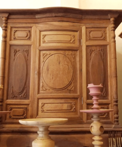Tủ thờ cánh cong là một trong những loại bàn thờ truyền thống được sử dụng rộng rãi trong nhiều văn hóa tôn giáo trên thế giới. Thiết kế của nó gồm một cánh giữa cong và vách có thể đựng đồ lễ bên trong, tạo nên một không gian trang trọng và linh thiêng cho các hoạt động tôn giáo.
