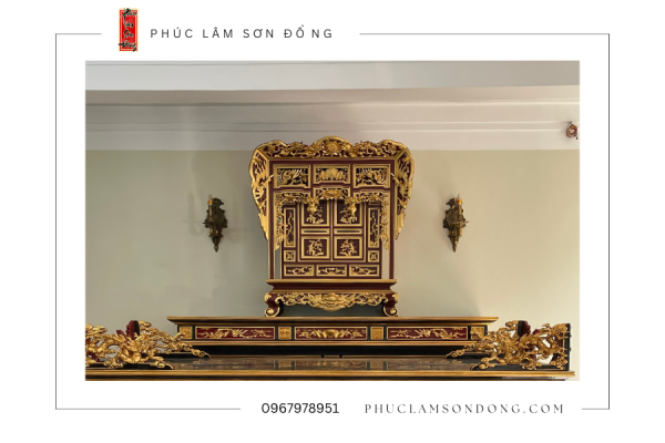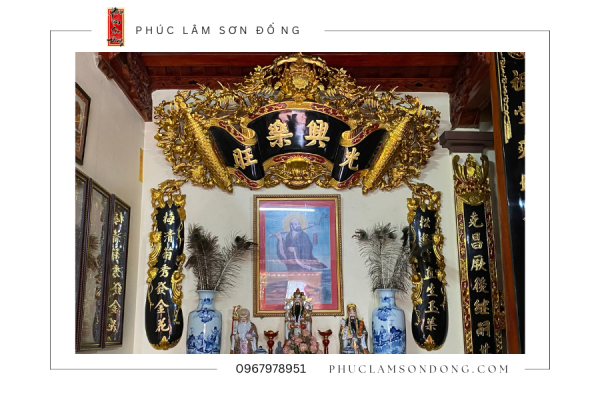 Ngoài những vật phẩm trang trí như lư thờ, ống hương, chân hạc, ngai thờ, [...]