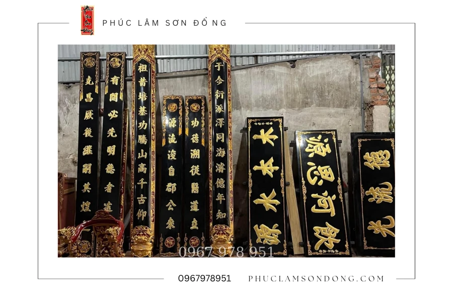 Khi đến với Sơn Đồng, một trong những địa điểm nổi tiếng với truyền thống chế tác đồ thờ tại Việt Nam, bạn sẽ được đắm chìm trong một thế giới của sự tinh tế, sáng tạo và đẹp mắt. Nằm tại huyện Hoài Đức, Hà Nội, Sơn Đồng, lịch sử lâu đời của làng nghề này và tài năng của những người thợ thủ công tại đây đã tạo ra những tác phẩm câu đối thờ đặc biệt, thể hiện sự kỳ diệu trong từng chi tiết và ý nghĩa sâu sắc trong từng dòng chữ. Các câu đối tại Sơn Đồng không chỉ đơn thuần là các bức tranh chạm trên giấy, chúng là những kiệt tác điêu khắc trên gỗ, tạo ra một sự kết hợp tuyệt vời giữa nghệ thuật và truyền thống. Hãy cùng chúng tôi bước vào thế giới của top 10 mẫu câu đối siêu đẹp tại Sơn Đồng, nơi nghệ thuật và truyền thống hội tụ để tạo nên những tác phẩm sáng tạo và ấn tượng. Cùng điểm qua những tác phẩm ấn tượng này và khám phá vẻ đẹp độc đáo của nghệ thuật câu đối tại làng Sơn Đồng.